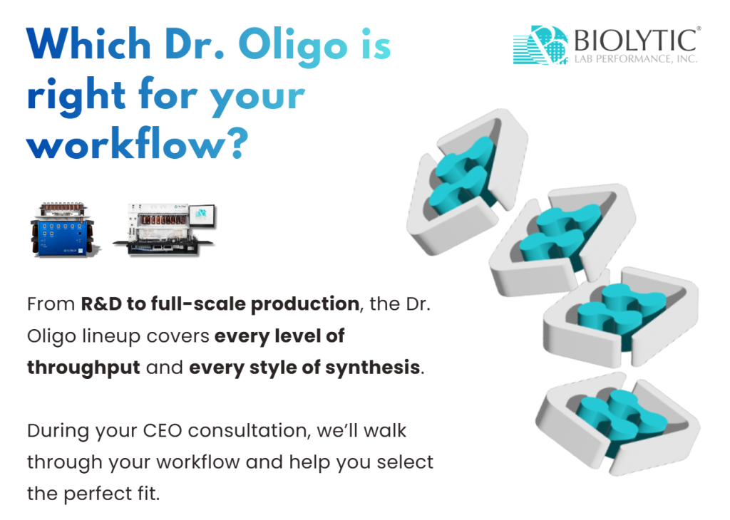 Find additional oligo synthesis resources here: Resources | Biolytic Lab Performance, Inc